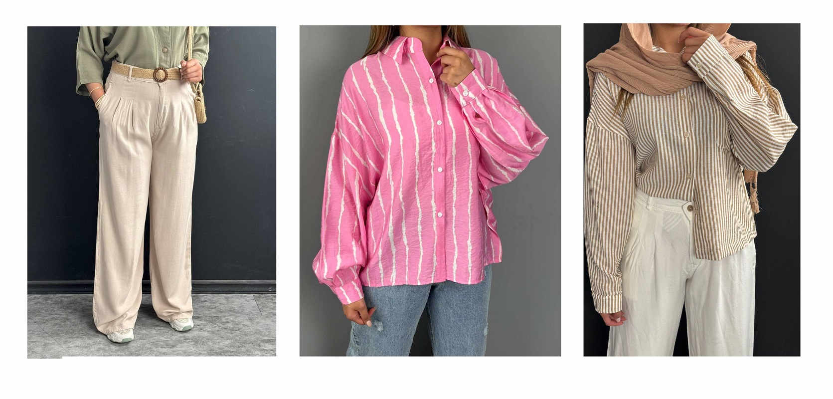 شومیز طرحدار با شلوار کتان خنثی: اگر شومیز شما طرحدار (مانند گلدار یا راهراه) است، شلوار کتان با رنگ خنثی مانند طوسی یا کرم انتخاب کنید تا تعادل در استایل حفظ شود.